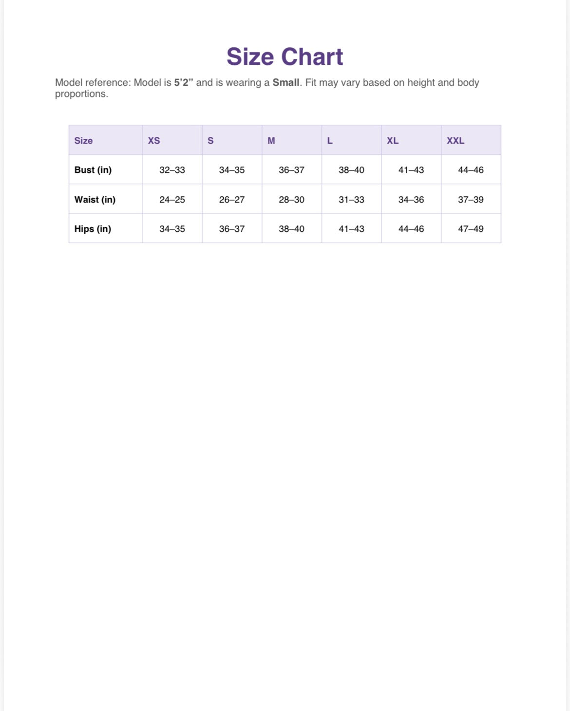 Model is 5’2” and wearing a size Small. Fit may vary based on height and body proportions.